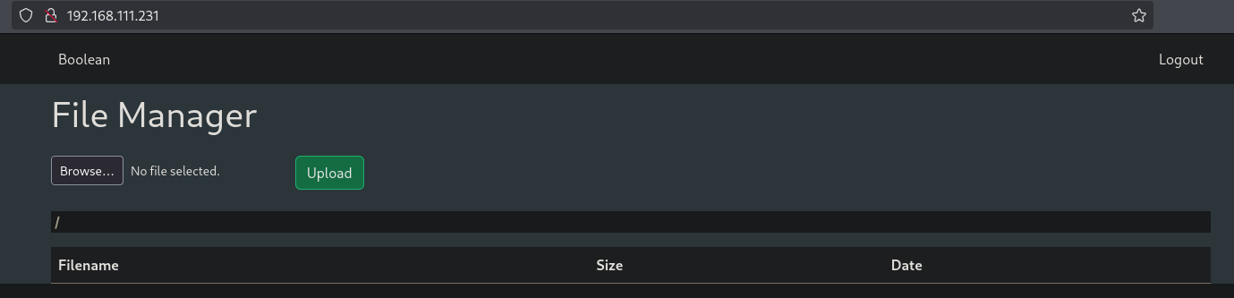 When we click on the file we just uploaded, it downloads it automatically. The URL: http://192.168.111.231/?cwd=&file=test&download=true is perhaps vulnerable for a directory traversal. Let’s see. When we change this to: http://192.168.111.231/?cwd=../../../../../../../etc&file=passwd&download=true, the /etc/passwd is downloaded.
