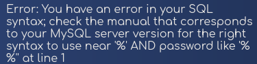 Enter a single quote character in the username field: ' and we get the following MySQL error: