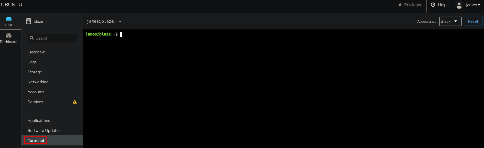 Now we can use the login page on port 9090 to get access to the Ubuntu 20.04.6 LTS Web Console. Only the credentials of the james user allow us access. So use these credentials to login.