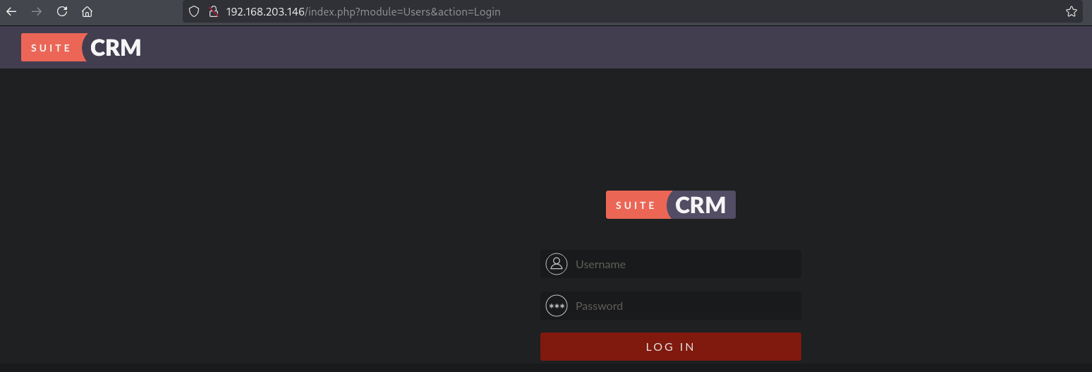 Once we connect to the target on port 80 using the webbrowser we get redirected to: http://192.168.203.146/index.php?module=Users&action=Login and are able to login using easy to guess credentials, admin:admin.