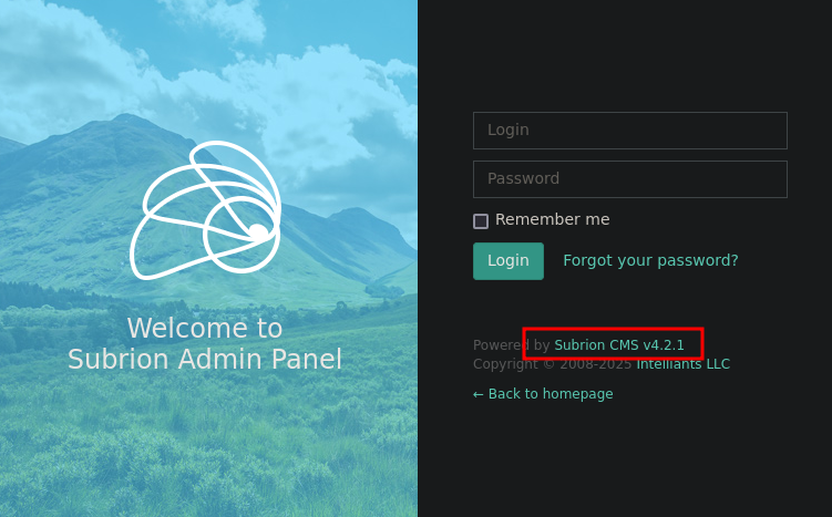 Use the received credentials to get SSH access or use a Arbitrary File Upload in Subrion CMS 4.2.1 to get initial access. Once access run linpeas to see that the target is vulnerable for CVE-2021-4034 (PwnKit) and also has a cronjob configured the is exploitable using exiftool (CVE-2021-22204). Both vulnerabilities lead to root access.