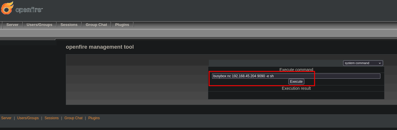 Now, execute the command and get a reverse shell in the / directory as the openfire user.