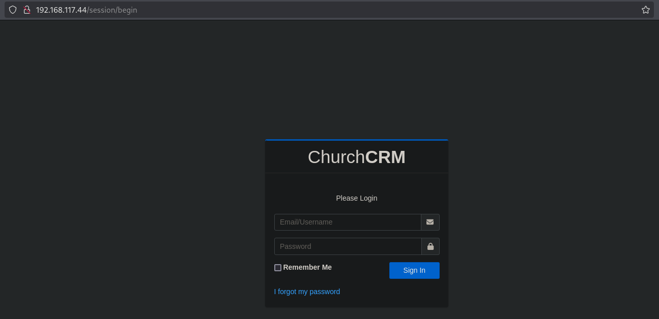 On port 80 there is a website called ChurchCRM with a login screen.