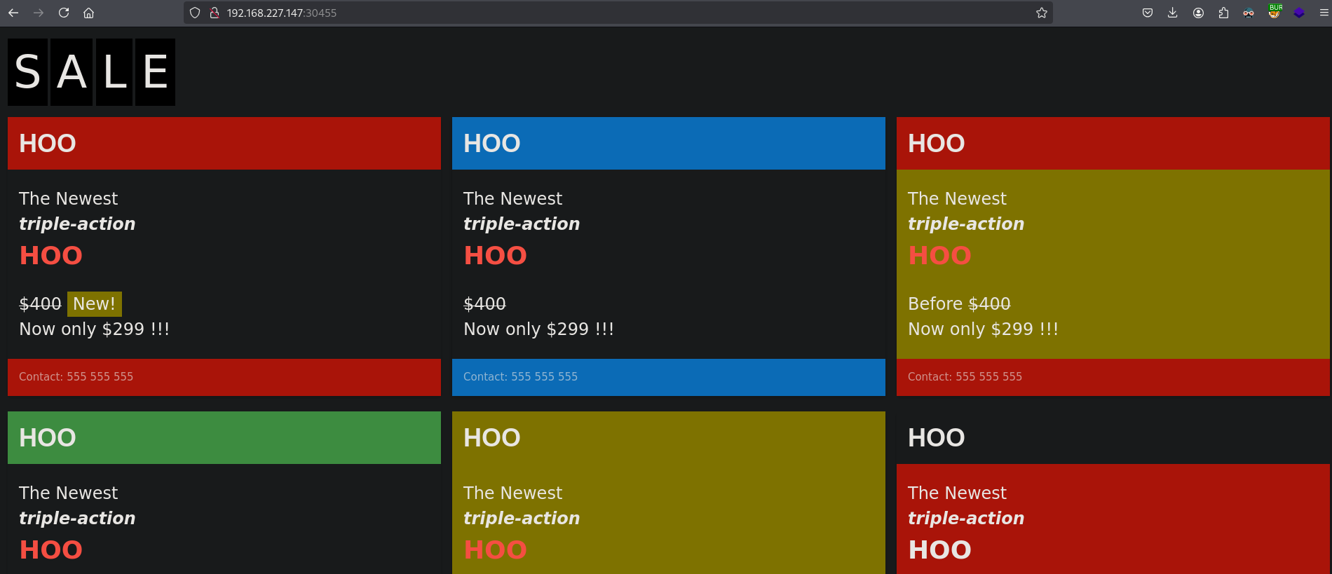 On port 30455 there is a SALE website also without any functionality to abuse.