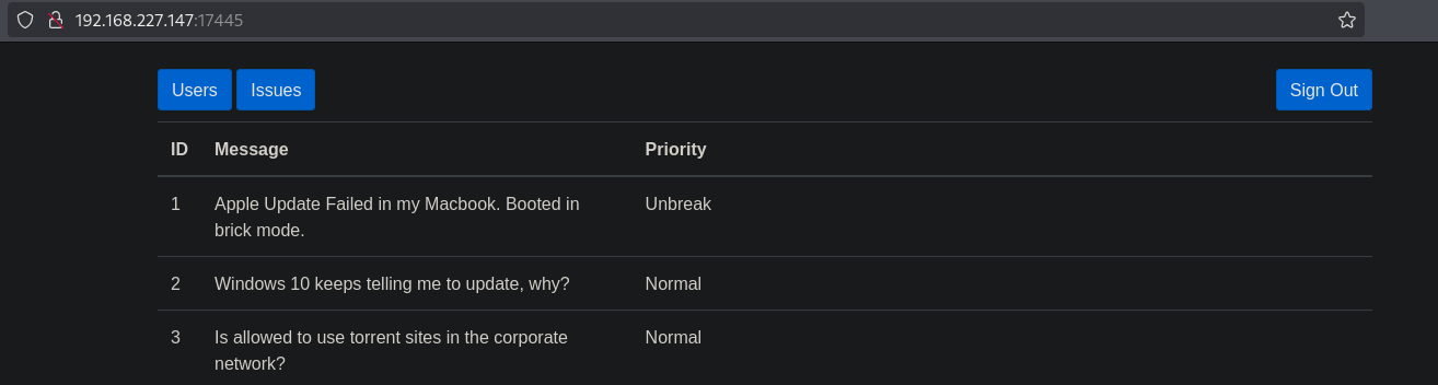 There is an interesting file called issuetracker.zip, once you click on we get redirected to this page.