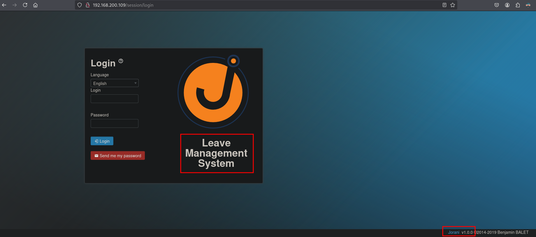On port 80 there is an application called Leave Management System / Jorani v1.0.0 which is vulnerable for CVE-2023-26469, which leverages path traversal to access files and execute code on the server for initial access. Once on the server the user jordak has sudo access to the /usr/bin/env binary without a password. This leads to privilege escalation to the root user.