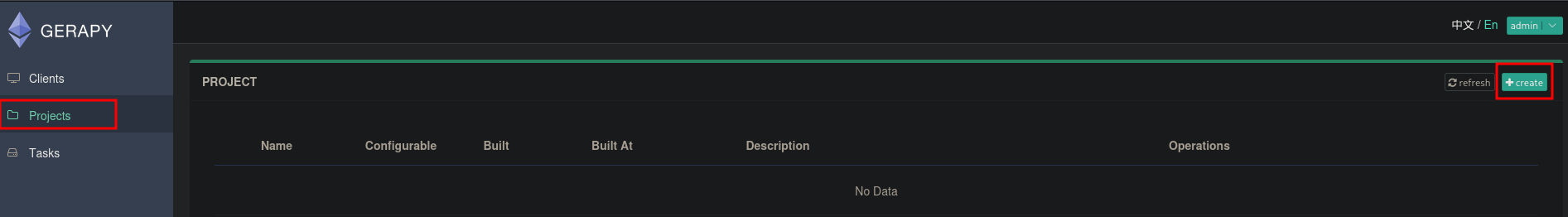 It errors out. This is because the exploit is requesting a project list, but there are no projects registered. So, in the web application we first need to create a new project. Select project / create, enter a project name and press create