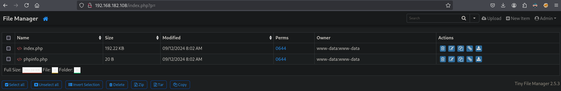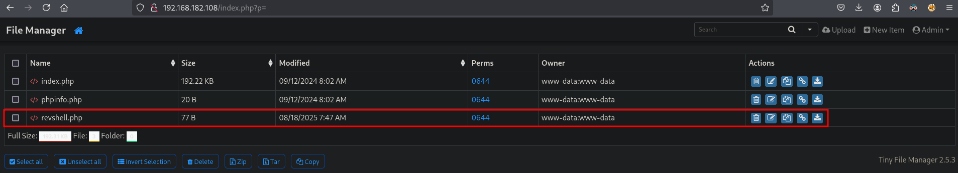 This is the same password as provided by OFFSEC, however the user is different. Log in the Tiny File Manager webapplication.