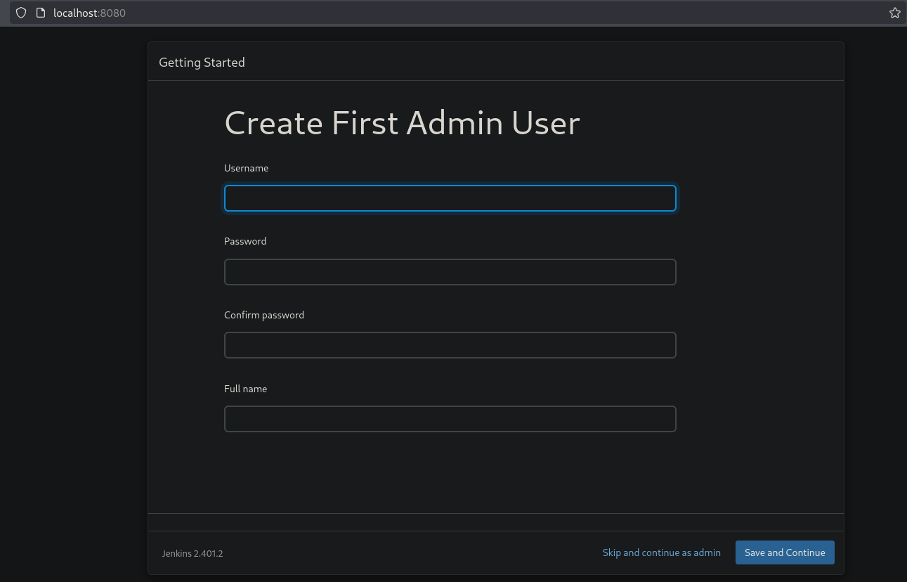 Once we paste the password in the Jenkins page (when we skip installing plugins) we can setup our own admin user.